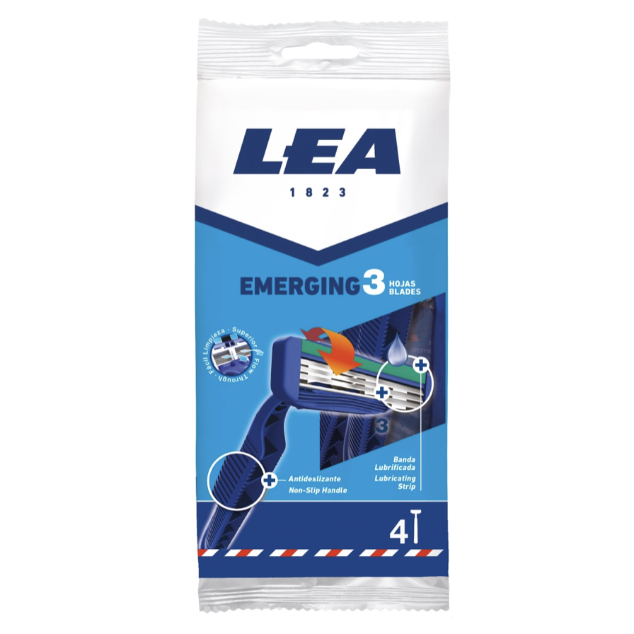 Maquinilla triple hoja, con banda lubrificada para un óptimo deslizamiento de la hoja favoreciendo un afeitado suave.Cabezal basculante que se adapta al contorno de la cara, para un apurado perfecto y hojas con geometría abierta para una fácil limpieza y aclarado.